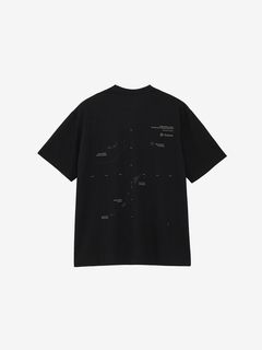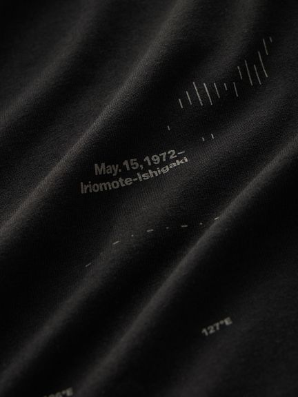 琉球諸島、屋久島エリアの国立公園の位置と地形を表現したグラフィック、各国立公園の面積、指定された年月日をプリントしたTシャツ。