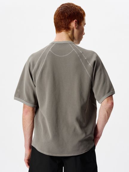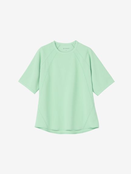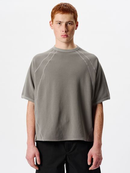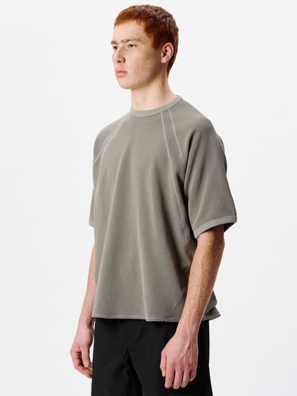身幅にゆとりをもたせることで衣服内に空気を取り込みやすく、快適に着られるシルエット。ラグランスリーブの切り替え線に、さりげないデザインポイントになるステッチをあしらいました。