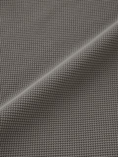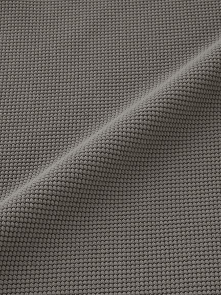 ポリエステル素材を使った生地は、ふくらみと凹凸感のあるワッフル生地の風合いはそのままに、メッシュ状にすることで通気性を高めているのが特長。