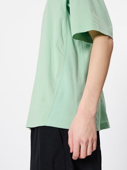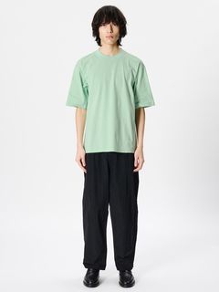 ややゆったりとしたシルエット。サイドパネルはフライス編みに切り替え、さらに心地よく着られるようにしました。