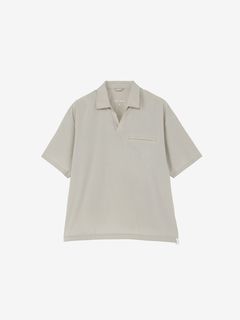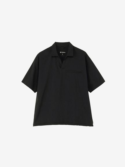 ストレッチ性のあるスムースな布帛生地で仕立てたショートスリーブのプルオーバーシャツ。