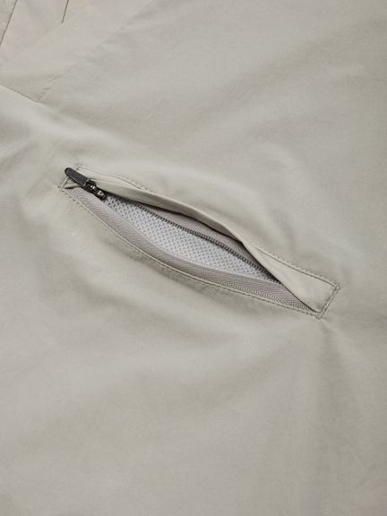 ファスナー付きの胸ポケットを備え、裾のドローコードでシルエット調節が可能。同素材のパンツとセットでの着用もおすすめです。