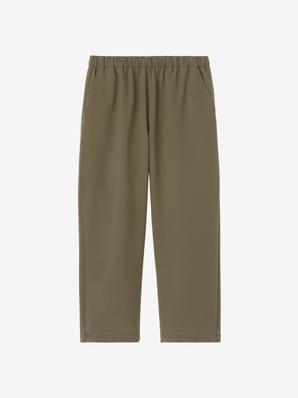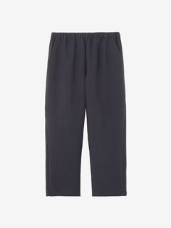 特徴的なのが大胆なワイドシルエットで、裾のドローコードを絞ると、シルエットの変化が楽しめます。股下はアンクル丈(9分丈)の設計。ウエストは、ゴム+スピンドルのイージー仕様です。