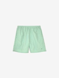 股下は足上げしやすい短めの設計(股下寸法:約18cm)で、リラックス感のあるシルエットに仕上げています。ウエストはゴム+スピンドルで調節でき、フロントは前開きなしのイージー仕様。