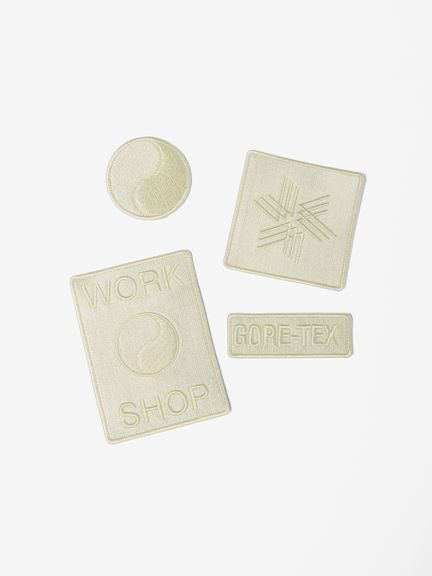 両脚部分と左胸部分に面ファスナーを配しており、同コレクションの為に製作された刺繍ワッペンが付属。