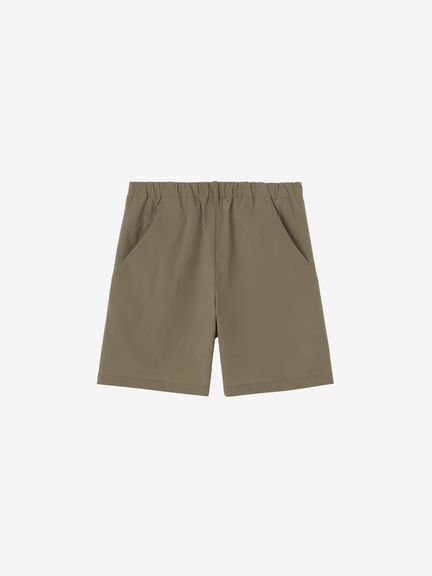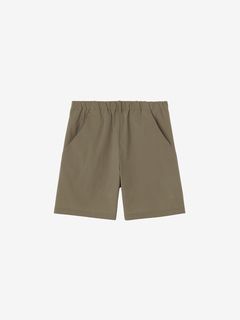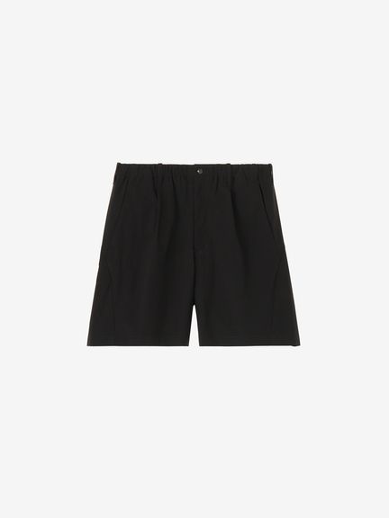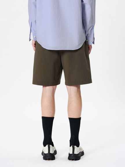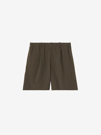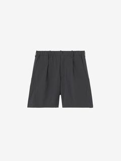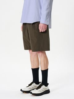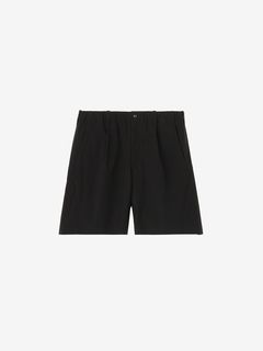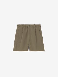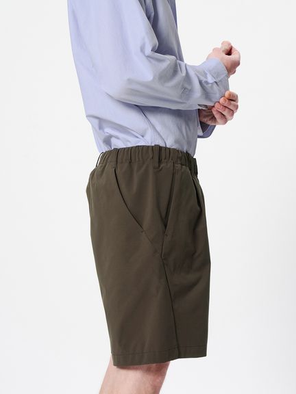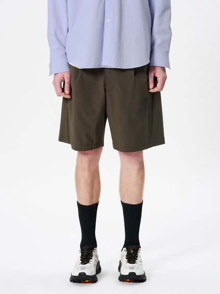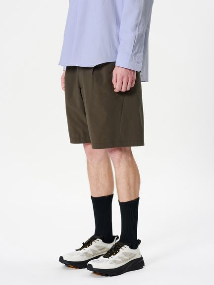 ワンタックを入れてゆとりをもたせた裾が広めのシルエットで、膝上丈に設計。ウエストはゴム+スピンドルの、リラックス感のある仕様。ベルトループを配しているので、きれいめからカジュアルまでさまざまな着方が可能です。