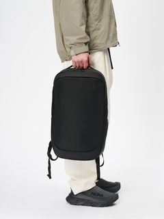 自立させたときにショルダーストラップをスマートに収納できる専用スリーブをバックパネル下部に備え、オフィスや移動中もスマートな佇まいです。