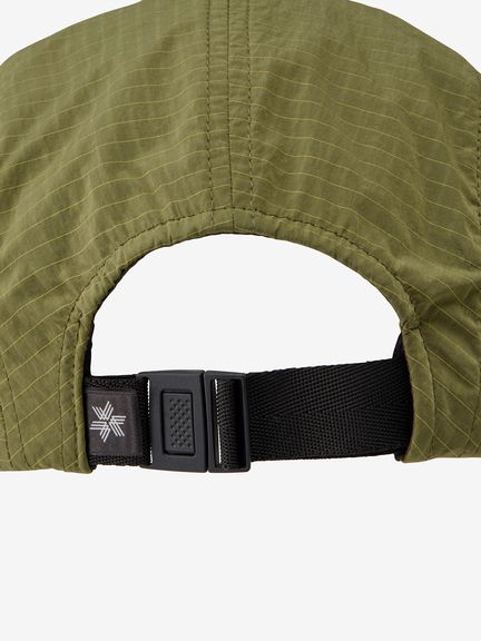 5パネルキャップのデザインで、つばはやや長めに設計。後頭部のアジャスターで、フィット感の調節が可能です。
