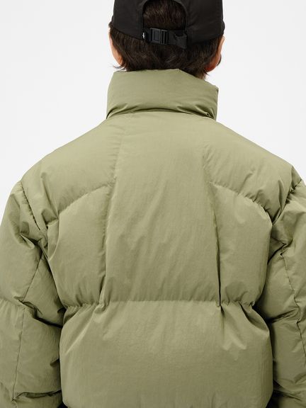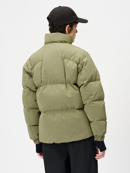 中に封入しているのは、かさ高性と軽量性を両立させた高品質な新毛のダックダウン。高度な洗浄技術によりダウン本来の機能を引き出しているCLEANDOWNです。ダウンのバッフル構造は、ダウンが背中の中心部分に集まる形状になっているため、体幹を効率的に保温できます。