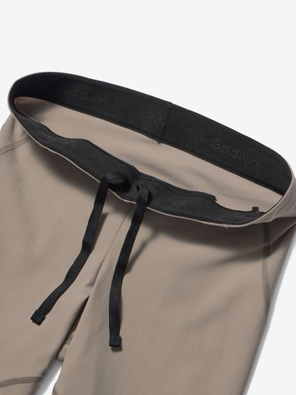 ウエスト部分には、肌当たりがやさしく汗処理にも優れたメッシュゴムを採用しています。メッシュゴムのズレにくい特長に加え、ずり落ちを軽減するためのドローコードを備えています。