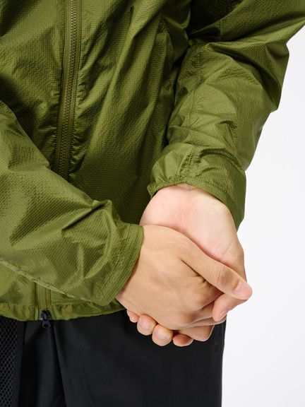 Goldwinがオリジナル素材として開発した、凹凸感のあるリップストップ生地を採用。ベースは薄手の10デニールで、リップストップの凸部分のみ高強度の糸で織ることで、軽量性と強度をバランスよく仕上げました。