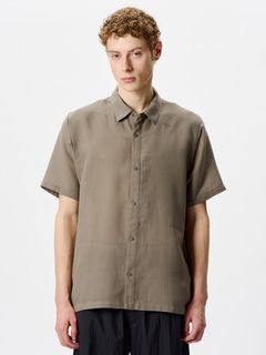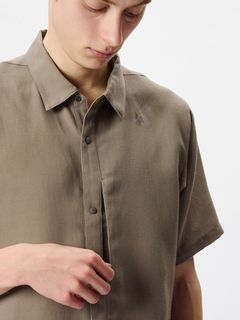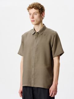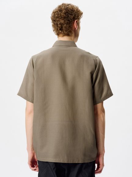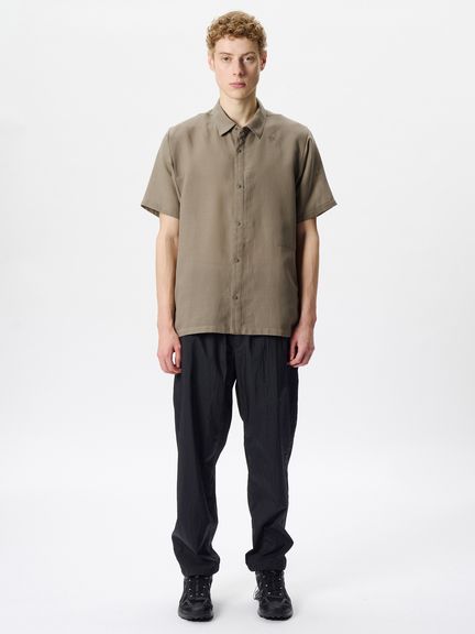紙糸素材によるドライな風合いが魅力の半袖テクニカルシャツ。山などのアウトドアフィールドにおけるウインドシェルの選択肢のひとつとして着用できる機能性と、洗練されたデザインを兼ね備えています。