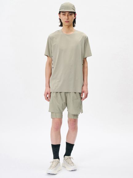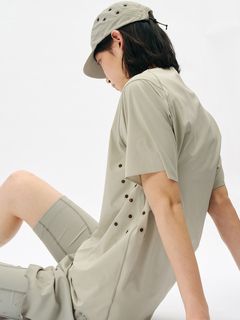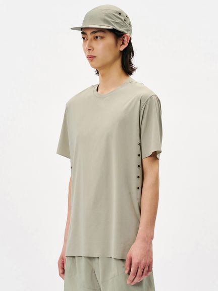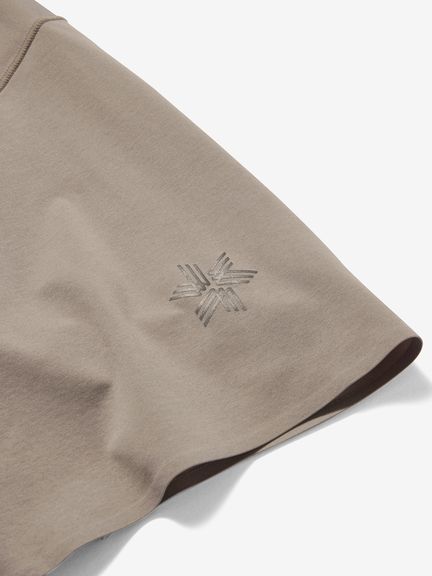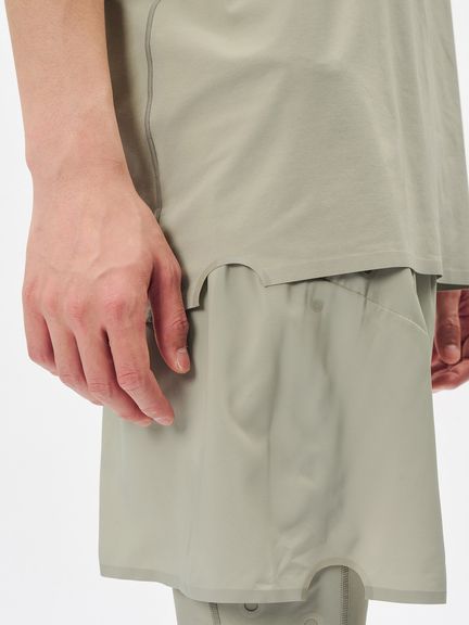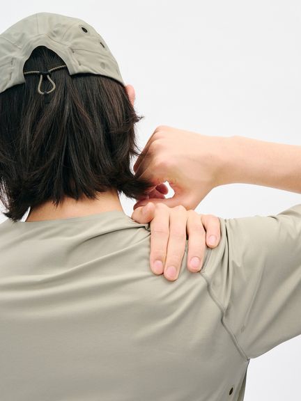 縫い目の当たりが気になりやすい首まわりや裾部分は接着仕様に、肩線の縫製は細幅のフラットシームで仕上げています。