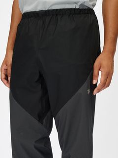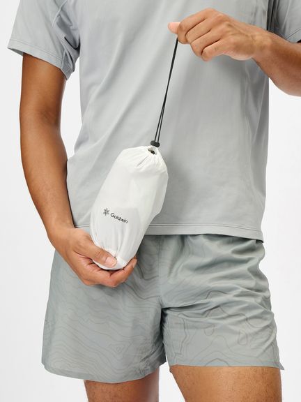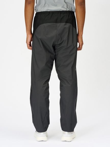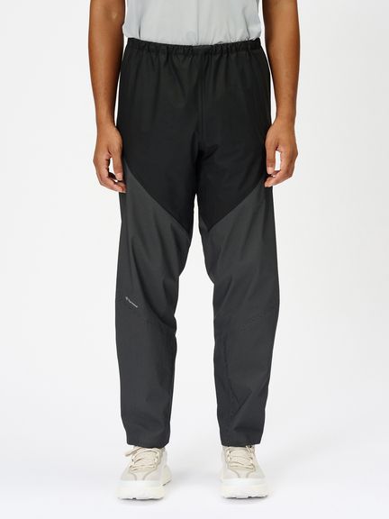 メイン素材には、引き裂き強度と軽量性のバランスを保持した3層構造の防水透湿素材を使用しています。20デニールのナイロン生地にダイニーマ繊維を織り込むことで引き裂き強度を高め、トレイルランニング中の突然のアクシデントでも生地のダメージを軽減します。熱がこもりやすい腰まわりから太ももにかけては7デニールの3層構造の防水透湿素材を採用することでムレ感をより軽減します。