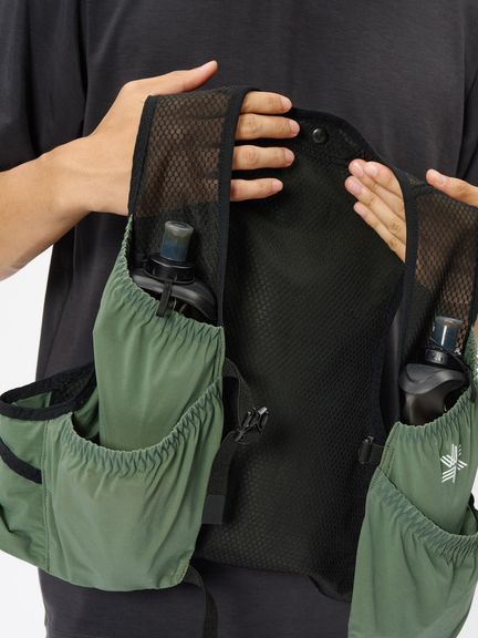 世界トップクラスのトレイルランナーと共同開発したランニングベスト。軽量かつ機能的な、ウエアとバッグの特性がマッチするように設計。ストレッチ性、軽量性、収納力にこだわって開発しました。