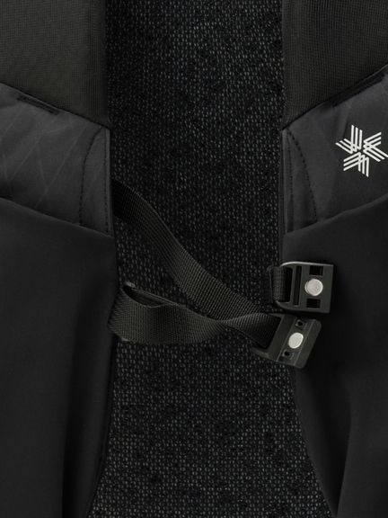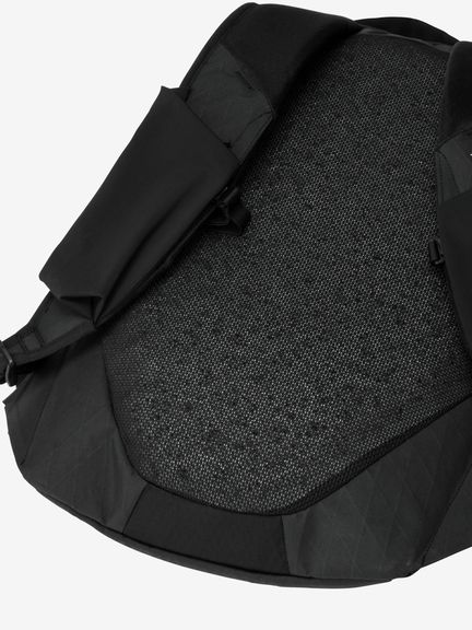 背面パネルには、立体的な構造のクッション材のため通気性が高いモノメッシュ素材を使用。熱がこもりにくく、気温が高いシーンでも快適に背負い続けることができます。クッション材部分は取り外し可能なため、お手入れが容易で、使用しない場合は軽量化を図れます。