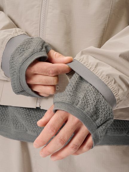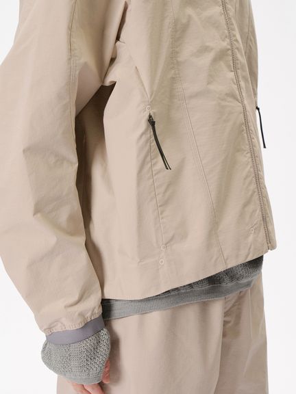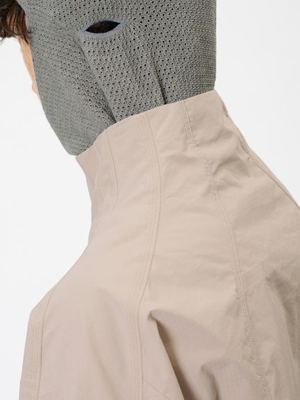 花のつぼみや種子から着想を得たフォルムで全体を縦のパネルで構成する、Goldwin 0のSeed Jacket のコンセプトを発展させたスタンドカラーのジャケット。コーティングを施した、タフなコットンポリエステル高密度リップストップ素材を使用。ハリ感のある素材によって、特徴的なシルエットを描きます。