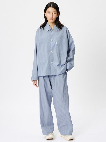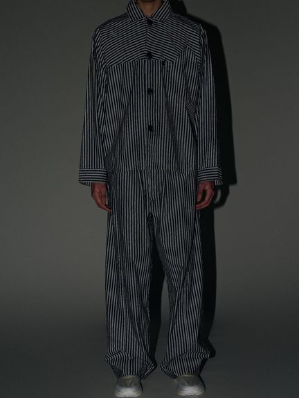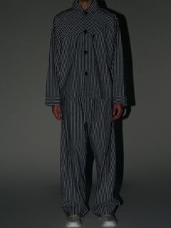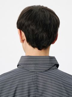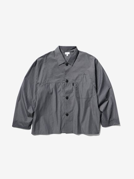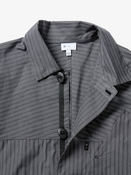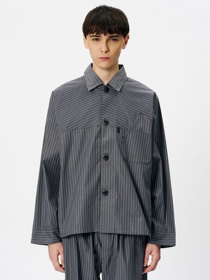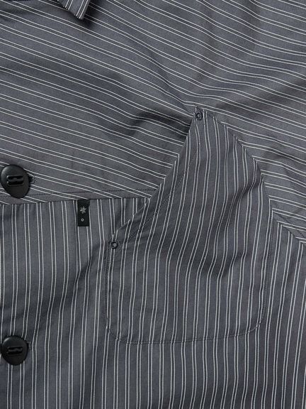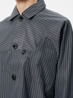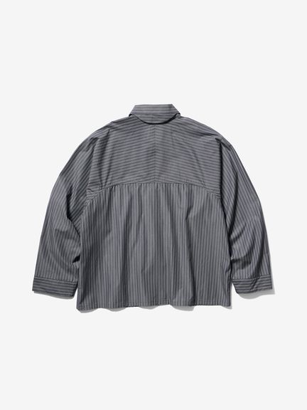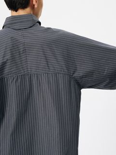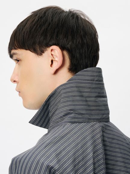 クラシックなストライプ柄の中に再帰反射糸を織り込んだ、オリジナルの生地で仕立てたロングスリーブシャツ。