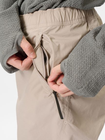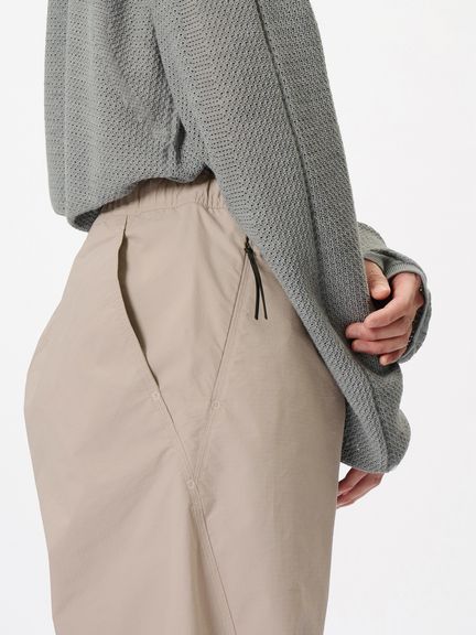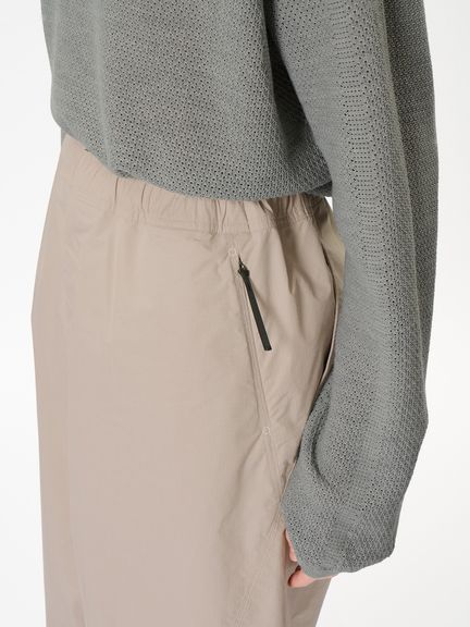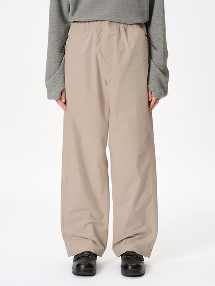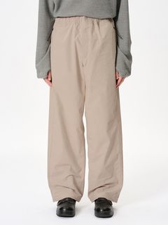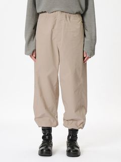 特徴的なバルーンシルエットを描くリラックスフィットのイージーパンツ。コーティングを施した、タフなコットンポリエステル高密度リップストップ素材を使用。ハリ感のある素材によって、特徴的なシルエットを描きます。