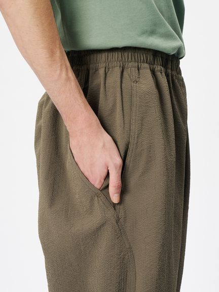 細かく波打つようなテクスチャーが特徴的な生地を使用したパンツ。