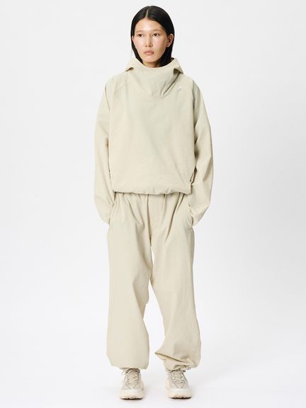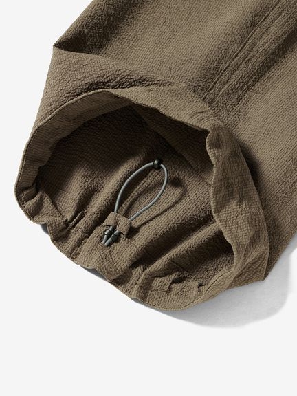 吸汗速乾性に加えて、UVプロテクト(UPF50+、紫外線カット率95%以上)機能をもちます。風をはらむゆったりとしたシルエット、肌に触れる面積の少ない生地によって、日差しの強い時期にも快適に着用可能。共地のスタッフサックが付属し、製品を収納できます。