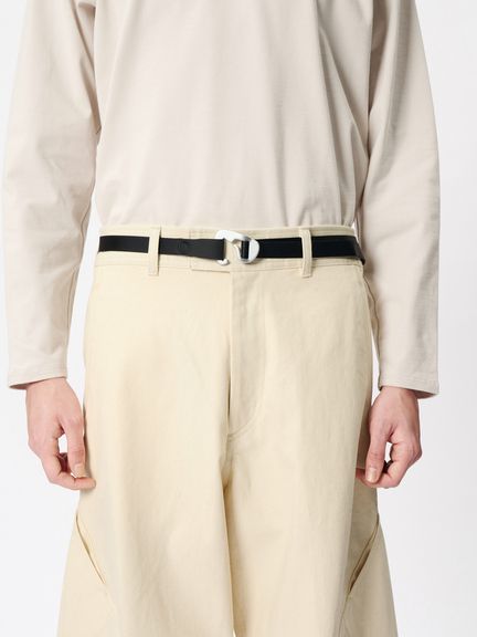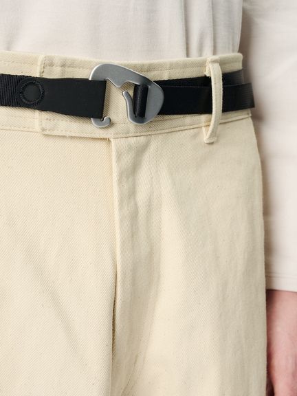 Goldwin 0によるオリジナルデザインのアルミニウム合金バックルを使用したテープベルト。