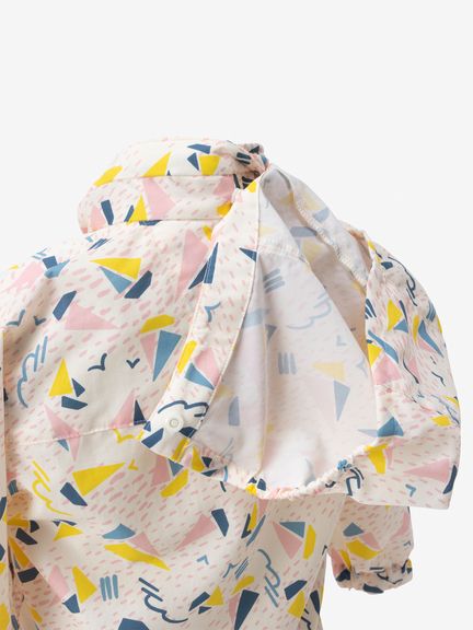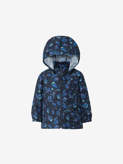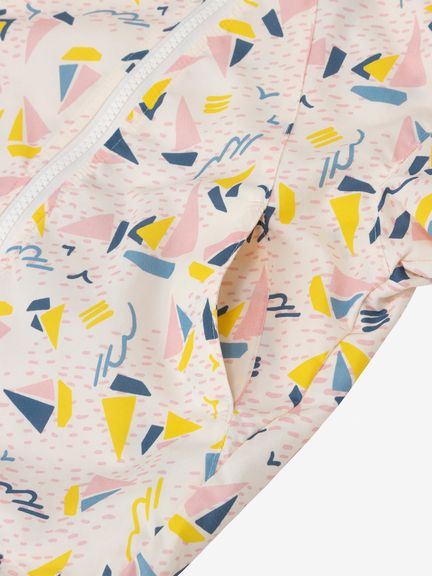 外遊びやトレッキングなどのアウトドアスタイルから普段着まで、幅広く活躍するベビー用ウインドブレーカー。ヨットやカモメなど、海のモチーフをあしらった総柄デザインです。
