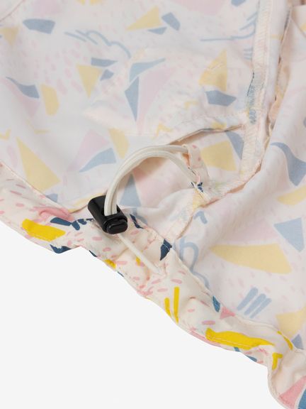ドライ感のあるコットンライクな風合いの生地を採用。はっ水加工を施しているため、多少の雨なら対応できます。フードの顔まわりと袖口はゴム仕様でフィット。裾はドローコードで絞れます。フロントファスナーは、子どもでも開閉しやすく、横方向に強く引くと外れる、安全性を考慮したQuick Freeファスナーを使用。後ろ裾にはSOLAS条約(海上人命安全条約)に準じたリフレクティブワッペンを配し、夜間や悪天時の視認性を向上させています。