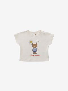 このコレクションでは、着ていて楽しく、知育にもなるアイデアを盛り込んでいるのが特徴。フロントにヘリーベアのプリントをあしらっており、その一部をぷっくりとした立体感のある発泡プリントにすることにより、風合いを楽しむことができます。
