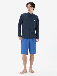 ポリエステル100%ながら、スラブ感のあるナチュラルな風合いの生地を採用。海やプールで着用しても色落ちしにくい加工を施しています。