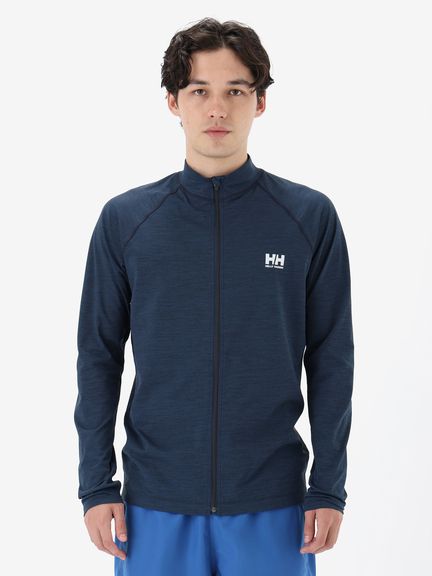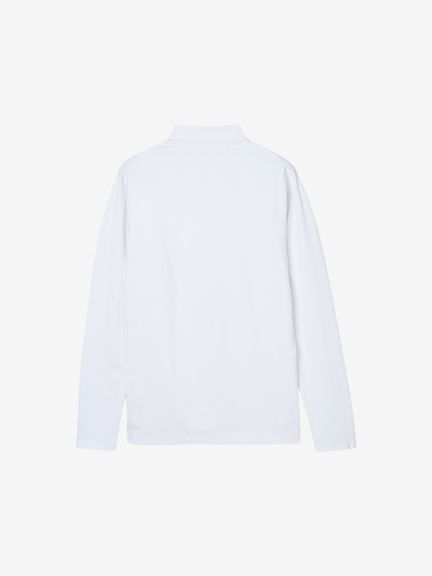 スポーツシーンでの動きやすさを考慮した、ややフィット感のあるシルエット。首まわりも紫外線から守れるよう、襟を高めに設計しています。
