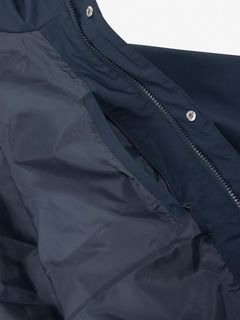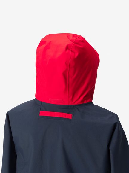 セーリングやトレッキングなどさまざまなシーンでマルチパーパスに使いやすい、マリンデザインを取り入れた防水ジャケット。表地にマットな素材感のナイロン2層素材を使用し、裏地にはポリエステルのタフタ素材を使用。セーリングウエアの象徴であるビルトインフードを踏襲し、雨風を凌ぐ際はフードを出して着用でき、使わない時は折り畳んで襟の中へコンパクトに収納できる仕様になっています。