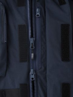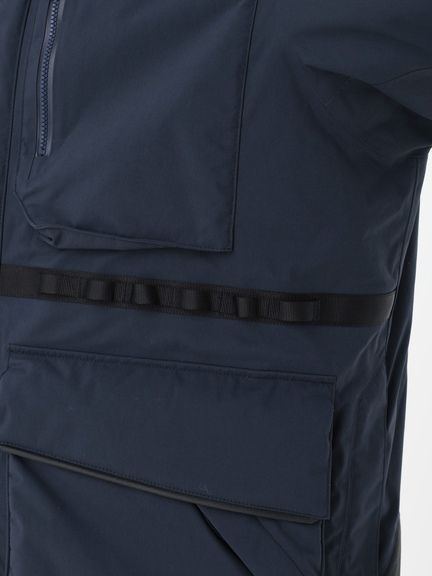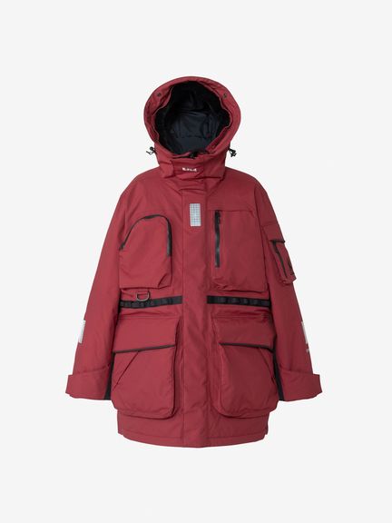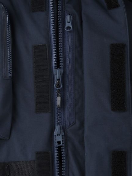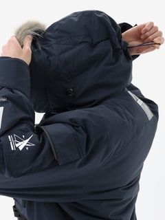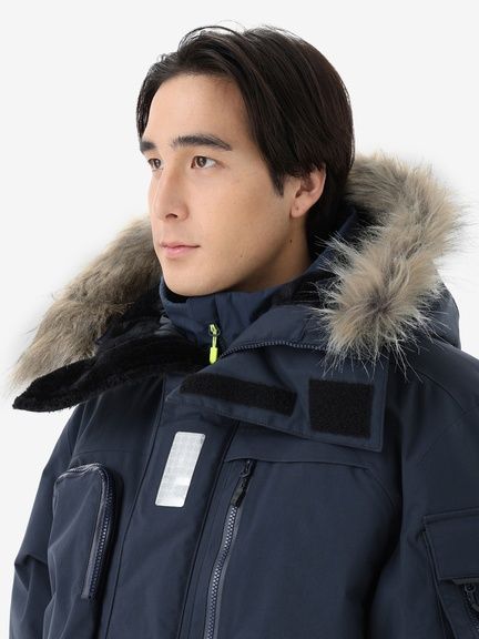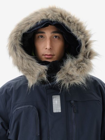 <表地>160D コーデュラナイロンオックス2L(ナイロン100%(コーティング等樹脂加工)) <中わた>thermoframe 160g(ポリエステル100%) <裏地>20D ナイロンタフタ(ナイロン100%) <別布>薄手コーデュラ(ポリエステル100% )<ファー>フェイクファー(ポリエステル80%、モタグリル20%(基布 ポリエステル100%))