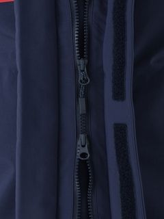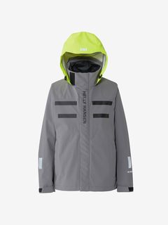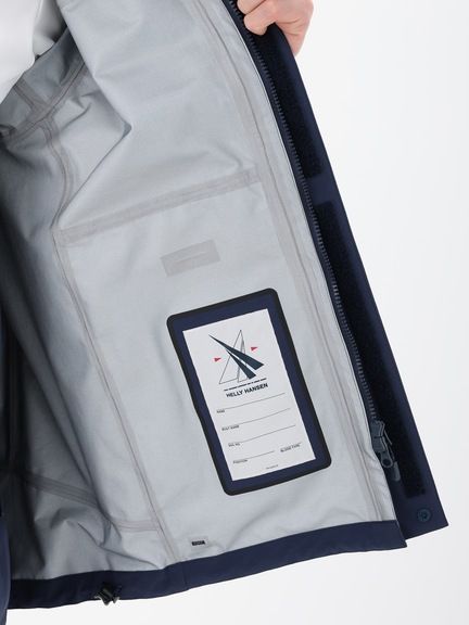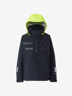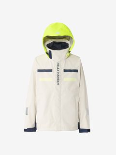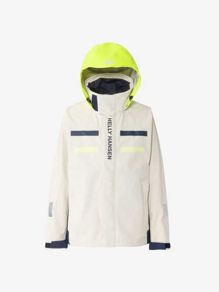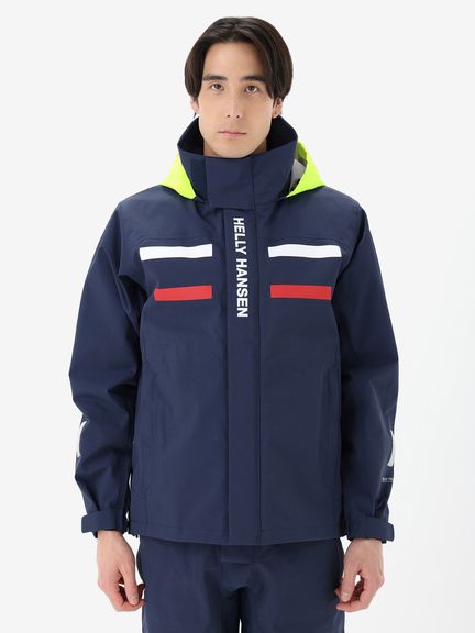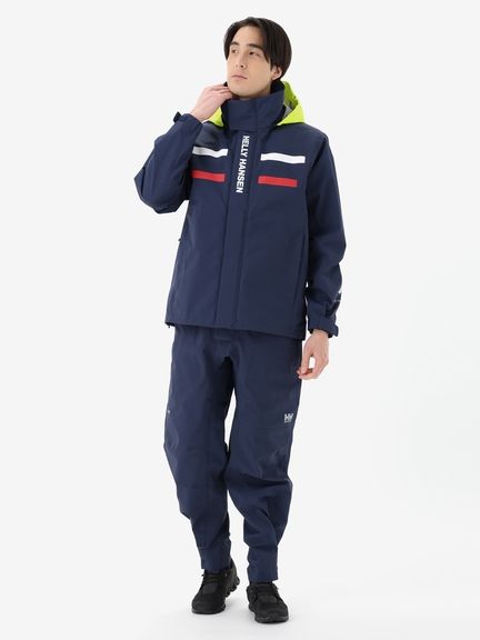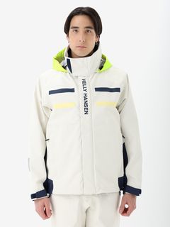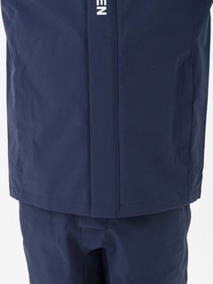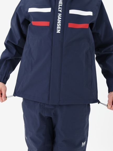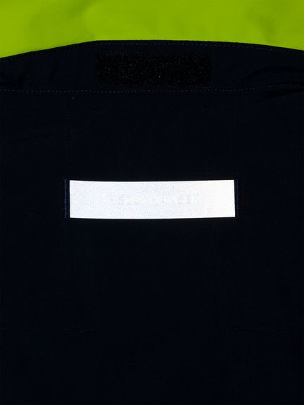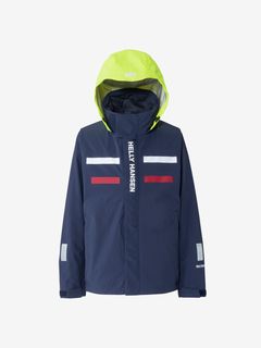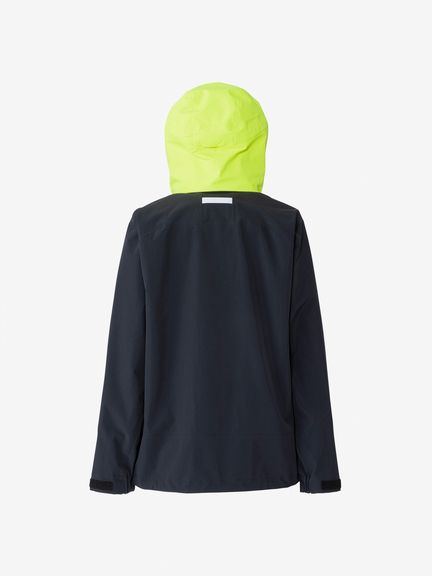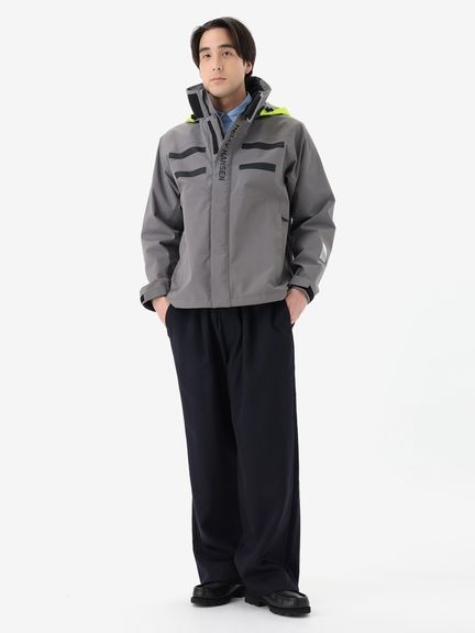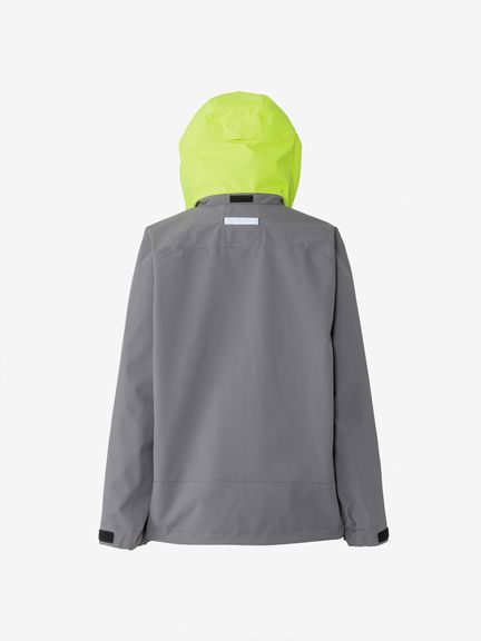 セーリングシーンで活躍するスペックでありながら、海から街までボーダレスに着られるデザインと設計になっているのが特長。身生地は、防水透湿性に優れた3層構造の生地で、肌側は肌触りのよいトリコットで仕上げました。ディテールにも、セーリングシーンで求められる機能を搭載。フロントは前立てがフラップ仕様で、軽量感がありつつ防風性・気密性を確保できるよう設計。フードは、ビルトイン仕様で、バタつきが気になるときはすっきりと収められます。フードをフラッシュイエローの配色にし、SOLAS条約(海上人命安全条約)に準じたリフレクトサイトのワッペンをフロントに設けることで、海上での視認性を高めています。