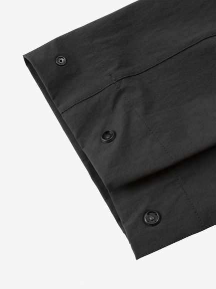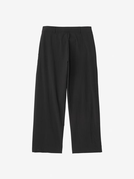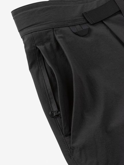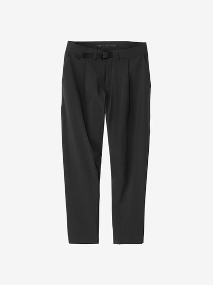 ARC PANT FLUIDは、ナイロンストレッチ素材を使用したタック入りのワイドパンツです。フロントはバックル仕様のベルトループで着脱が容易で、ユーティリティフックや裾には絞り込みが可能なドットボタン、隠しファスナーポケットなど、セーリングパンツのディティールを備えています。