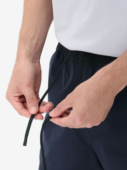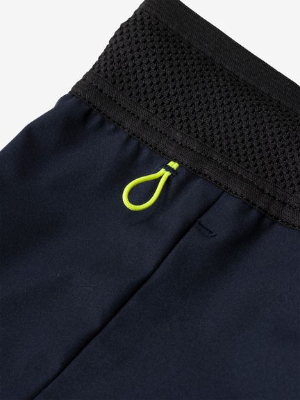 ウエスト部分は、通気性がよく汗がたまりにくいメッシュ素材に切り替え。ドローコードで絞り込みができるウエストや裾に配したスリットなど、運動時に使いやすい仕様で仕上げました。