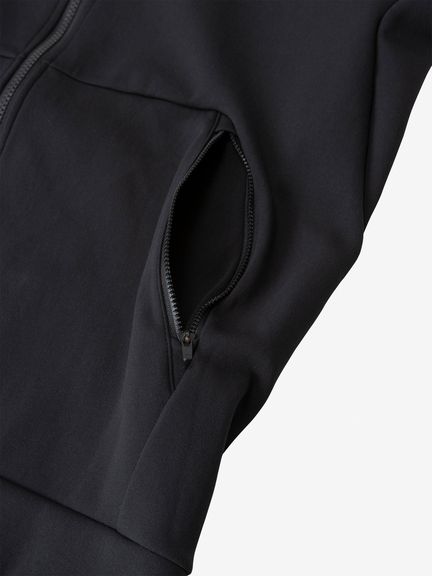 ややタイトなシルエットで、トレーニング時はもちろん、ジムなどの行き帰りにも重宝するシンプルなデザイン。フロントのビスロンファスナーがさりげないアクセントになっています。
