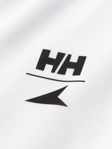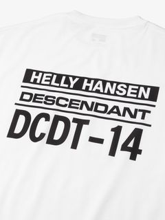HELLY HANSENとDESCENDANTのロックアップロゴを前面、背面にプリントしたドライなタッチ感のショートスリーブTシャツ。