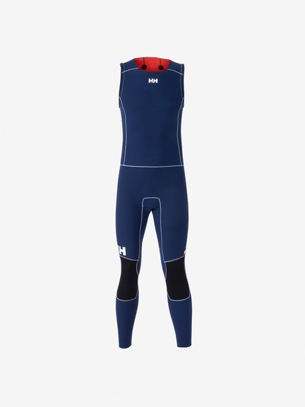 石灰石を由来とした環境配慮型の素材、クロロプレンラバーを使用したウェットスーツシリーズのロングジョン。HELLY HANSENが手がけるディンギーカテゴリで、トップアスリートに向けて開発してきた知見を落とし込んだアイテムです。