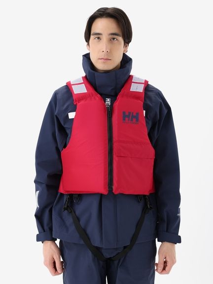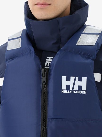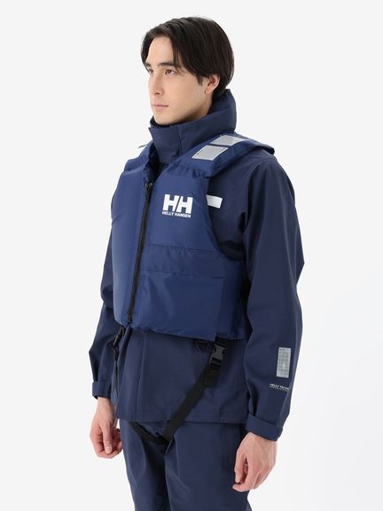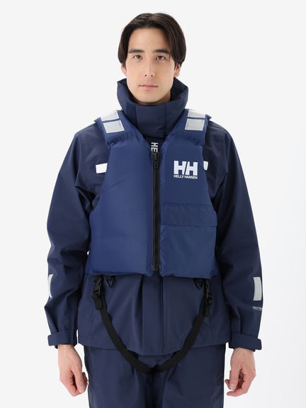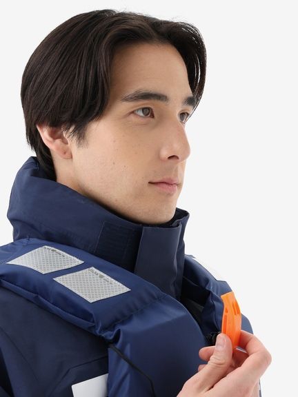 国土交通省型式承認品で、小型船舶用救命胴衣(TYPE D)の基準に適合したライフジャケットです。引き裂きに強い300デニールのポリエステルオックス生地にすることで、旧モデルに比べて耐久性が向上。さらにバックルやファスナーの強度も高めています。カラーは海上で見えやすく、デザイン性も備えた配色で展開。肩部分にはリフレクターを配置し、さらに視認性を高めています。ズリ上がり防止のレッグループを配し、サイドベルトでアジャスト可能。内側のポケットにホイッスル付き。