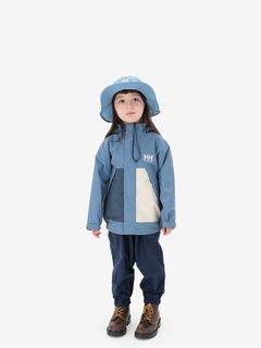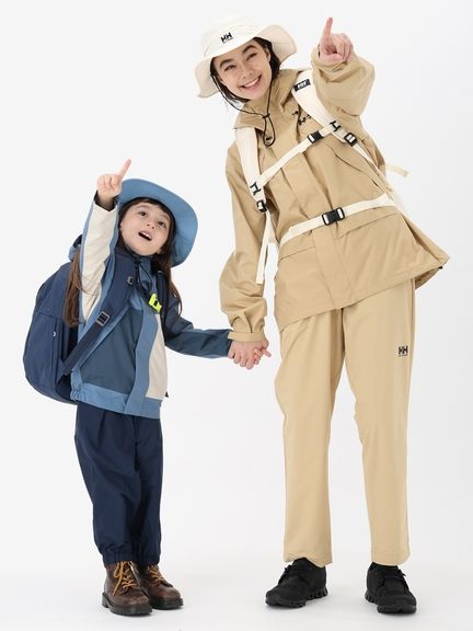 重ね着がしやすい、ややゆったりとしたシルエット。フロントファスナーは、子どもでも開閉しやすく、横方向に強く引くと外れる、安全性を考慮したQuick Freeファスナーを使用。左胸のロゴを転写リフレクト仕様にし、後ろ裾には、SOLAS条約(海上人命安全条約)に準じたリフレクティブワッペンを設けることで視認性を高めました。右ポケット内には、鍵や防犯ブザーなどを掛けられるキーループ付き。スポーティすぎない雰囲気のためタウンユースもしやすく、普段づかいから林間学校などの校外学習まで、幅広いシーンで活用できる1着です。同デザインの大人用ジャケットがあり、親子でお揃いのコーディネートが楽しめます。