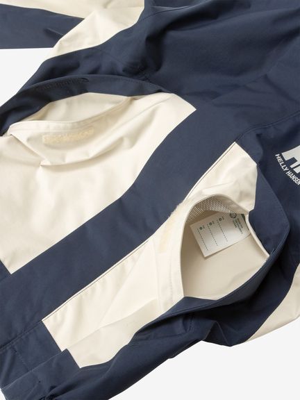 素材は、防水透湿性に優れ、雨の中でも快適さを維持するヘリーテックパフォーマンス2.5層構造。環境への負荷に配慮して、再生利用可能なリサイカブル素材を使用しています。