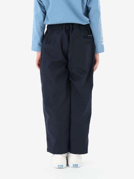 オーセンティックな印象のストレートシルエットで、裾にかけて少しテーパードさせています。裾をロールアップして着やすいよう、丈はあえて長めに設計。簡易的なサイズ調節をすることで、体が成長しても長い間着用できるよう仕上げました。