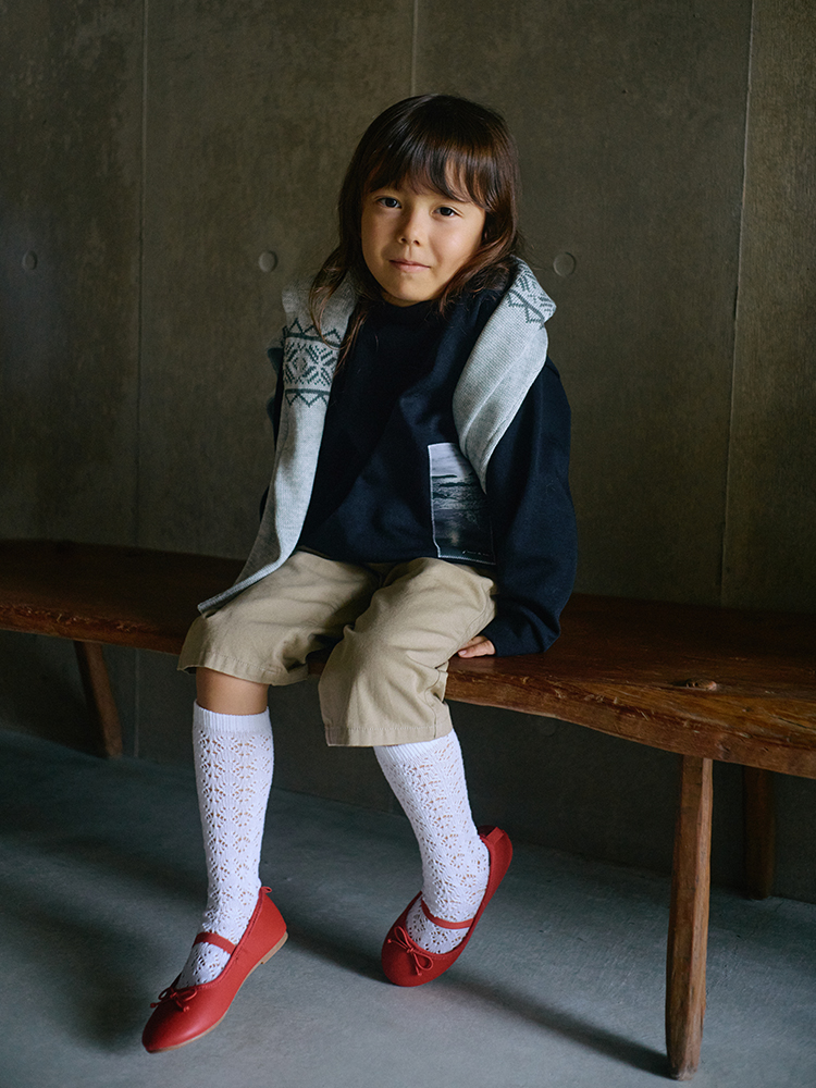 左前裾にはアニエスが自宅から撮り下ろした海の写真をジャカードで表現したエクスクルーシブネームを配置しました。