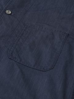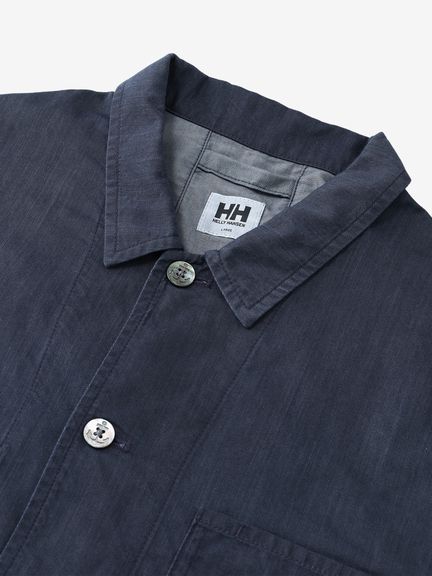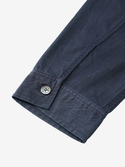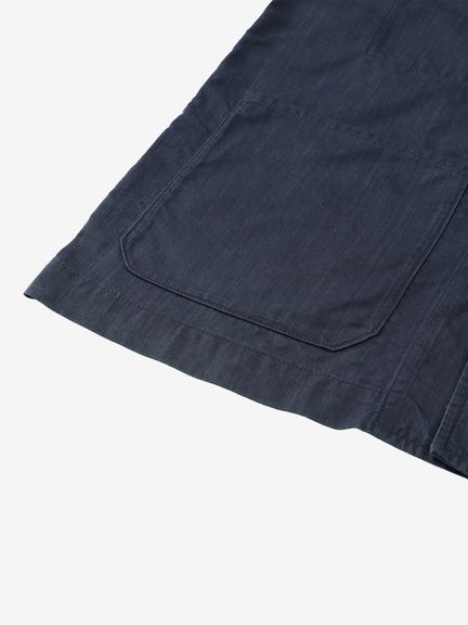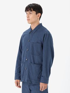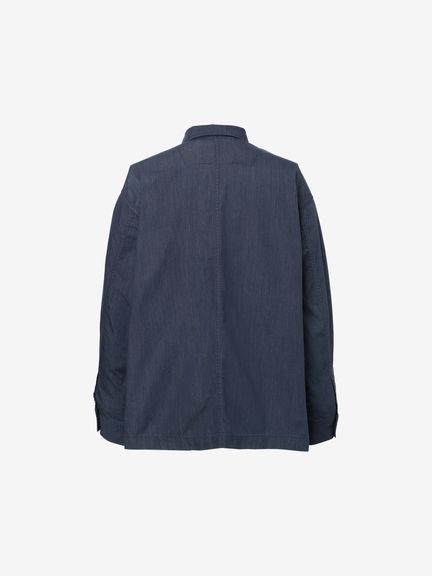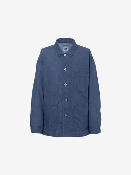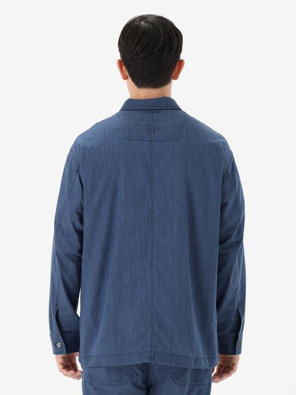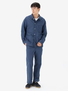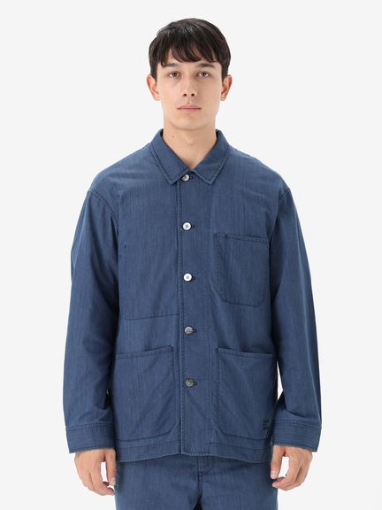 パッチポケットが印象的な、フレンチワークジャケットをベースにしたデザイン。フロントには、イカリ柄の貝ボタンをあしらいました。