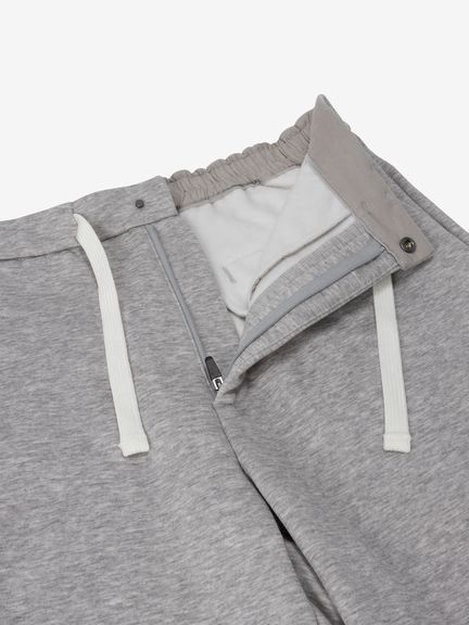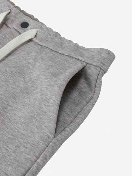ダンボールニットのようなハリと膨らみのある生地感で、クリーンな印象。素材特性として、厚みのあるスウェット生地でも軽量なのが魅力です。やや太めのストレートシルエット。ウエストは、後ろだけゴムシャーリング仕様で、すっきりした見た目とリラックス感を両立させています。同シリーズのトップスとのセットアップもおすすめです。環境への負荷に配慮して、素材の一部にリサイクル糸を使用しています。