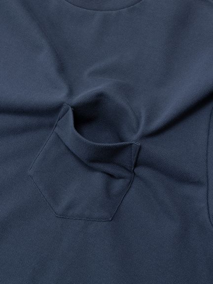 ややゆったりとしたボックスシルエット。襟は、太めのリブ仕様です。におい対策として、抗菌防臭のポリジン・ステイフレッシュ加工を採用。UVケア(UPF15-30、紫外線カット率85%以上)機能付き。タウンユースはもちろん、クルージングなど軽めのアクティビティにも重宝します。