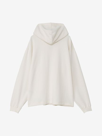 オーガニックコットンとリサイクルポリエステルの糸を吊り編み機で編むことで、薄手でもふっくらとした風合いが実現しています。コットン100%に比べ乾きやすく、幅広いシーズンに着やすいアイテムです。