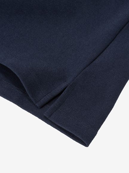 表側がコンパクトパイル、肌側がスムースになるよう編むことで、汗をかいたときの拡散性の高さと着心地のなめらかさを実現させています。