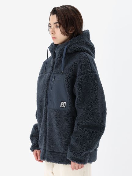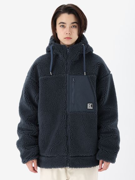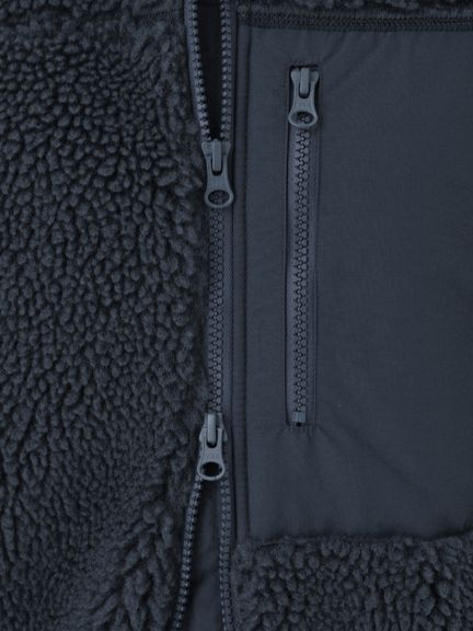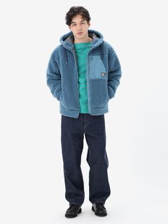 アウターとして着用しやすい、ややゆったりとしたシルエット。袖はすっきりとしたパイピング仕様で、折り返しても着やすくしています。左胸にファスナー付きポケットを配置。両サイドのポケットはハンドウォーマー仕様です。